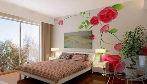 花朵手繪在床頭背景墻上,讓整個(gè)具有臥室別樣的風(fēng)情。