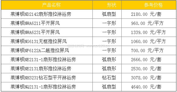 2、萊博頓淋浴房價格
